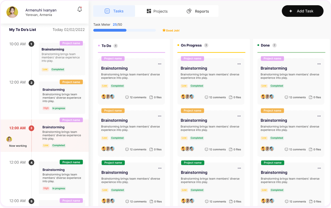 Set clear goals, define tasks, and organize your projects with flexible boards, lists, or timelines.